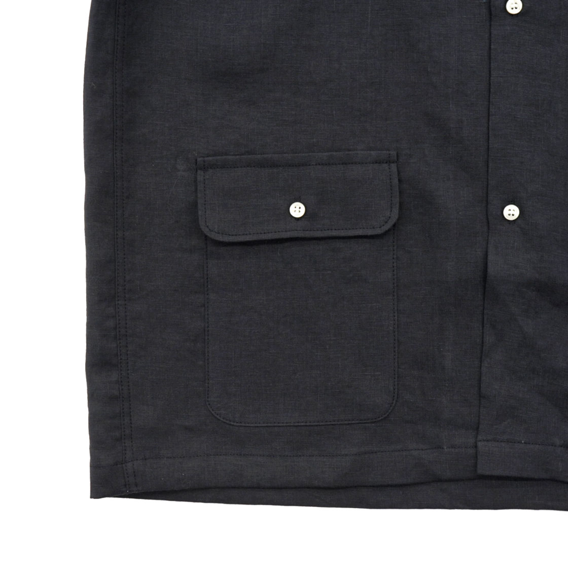 生地は5.5オンス程度のリネンを使用。あえて肉感を持たせることで、肌離れをよくしています。